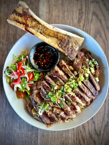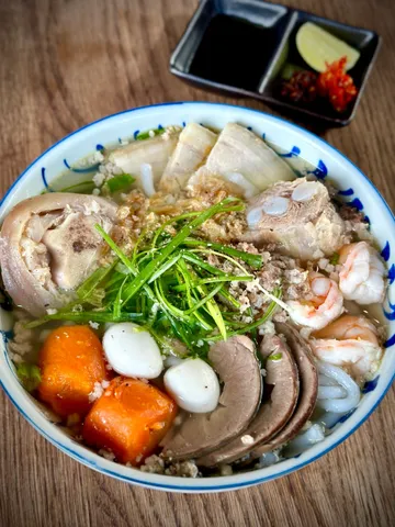 24 Hour Beef Bone Broth. Northern Style Pho. Served with side of lime, jalapeño, Sriracha, and Hoisin Sauce. Not Served with Beansprout and Basil. May Substitute for Thin Rice Noodle, Thin or Thick Vermicelli, Thin Egg Noodle, Tapioca Noodle. Make sure to ask for No Hoisin Sauce if gluten free.
