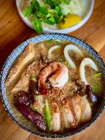 Bun Mam, Bun Bo Hue and Bun Rieu Served with Mint, Cilantro, Lime, Lettuce, Jalapeño. Banh Canh Served with Thai Chili, Lime, Jalapeño.